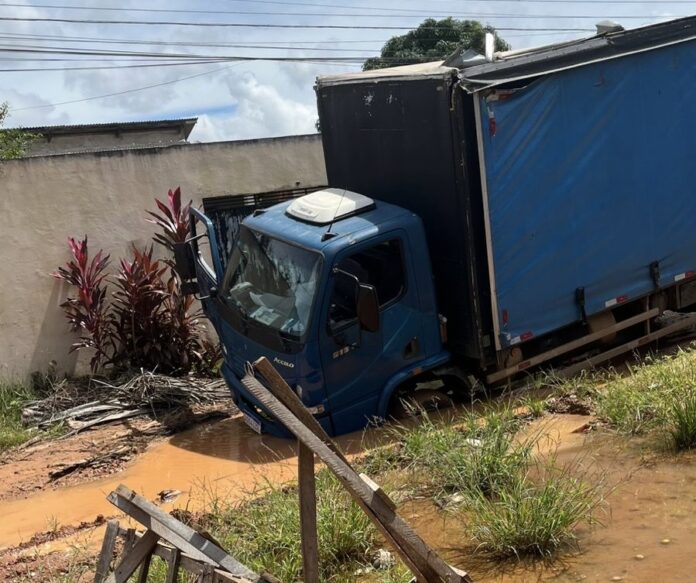 Um caminhão caiu em um buraco na Rua Doutor Victor, no bairro Boa União, região da Baixada da Sobral, nesta segunda-feira (06), evidenciando mais uma vez as dificuldades enfrentadas por quem precisa trafegar pelo local.