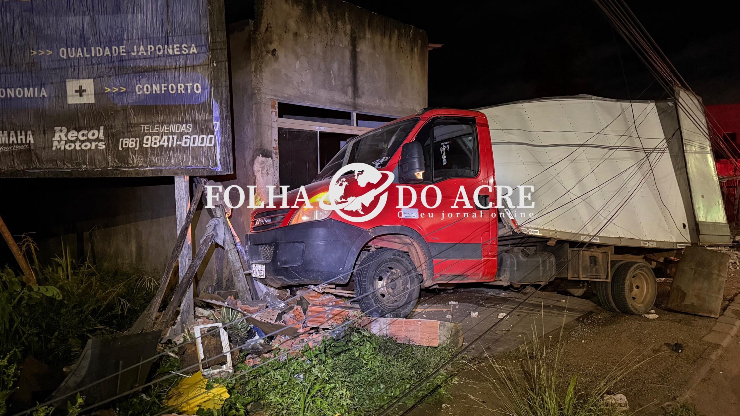 Caminhão perde controle, atinge carro, derruba poste e invade comércio em Rio Branco