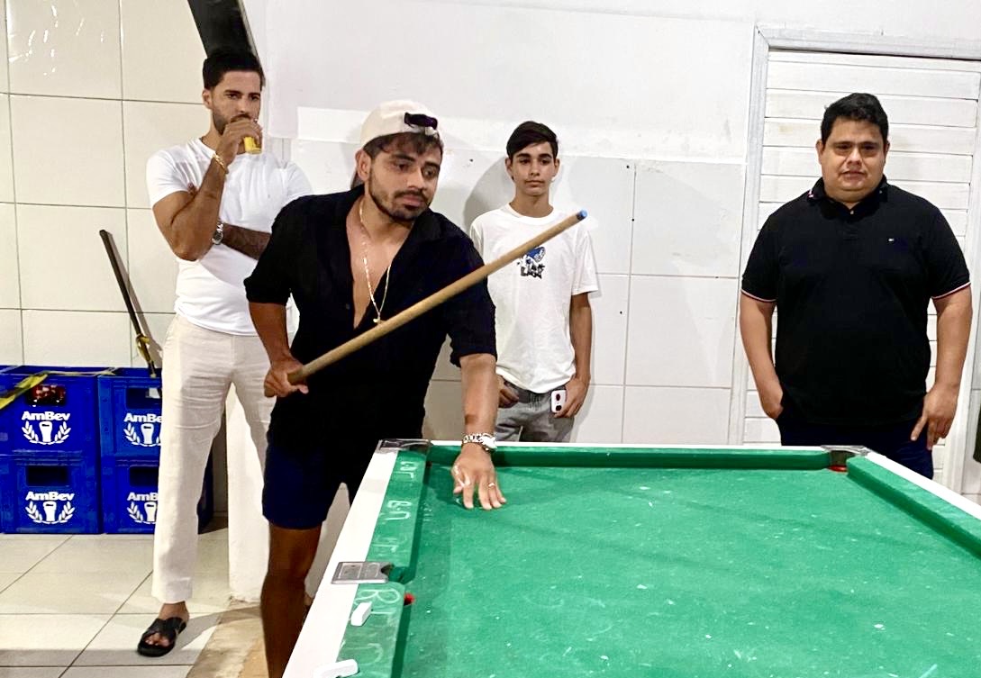 Cantor Evoney Fernandes joga sinuca no Tonheiros Bar, em Rio Branco