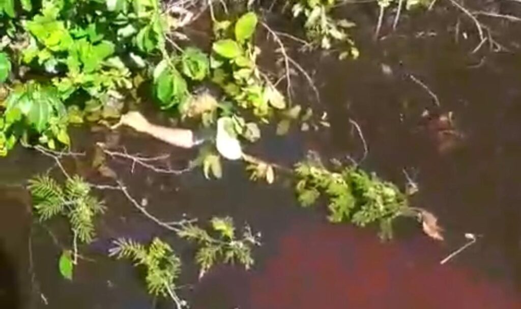 Prontamente equipes da PM se deslocaram para o local onde foi possível constatar um veículo tipo caminhonete dentro de um Igarapé.