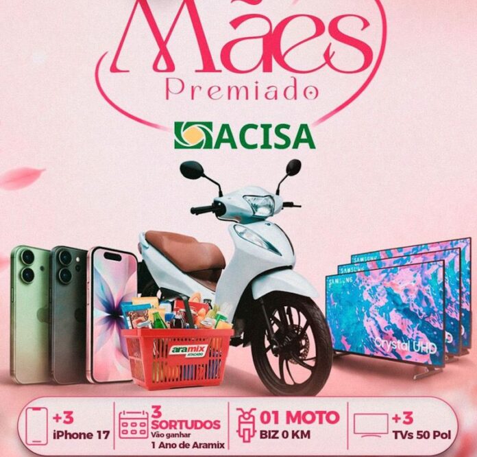 A premiação inclui uma motocicleta zero quilômetro, três smartphones modelo iPhone 17, três televisores de 50 polegadas e três prêmios adicionais consistentes em um ano de Aramix.
