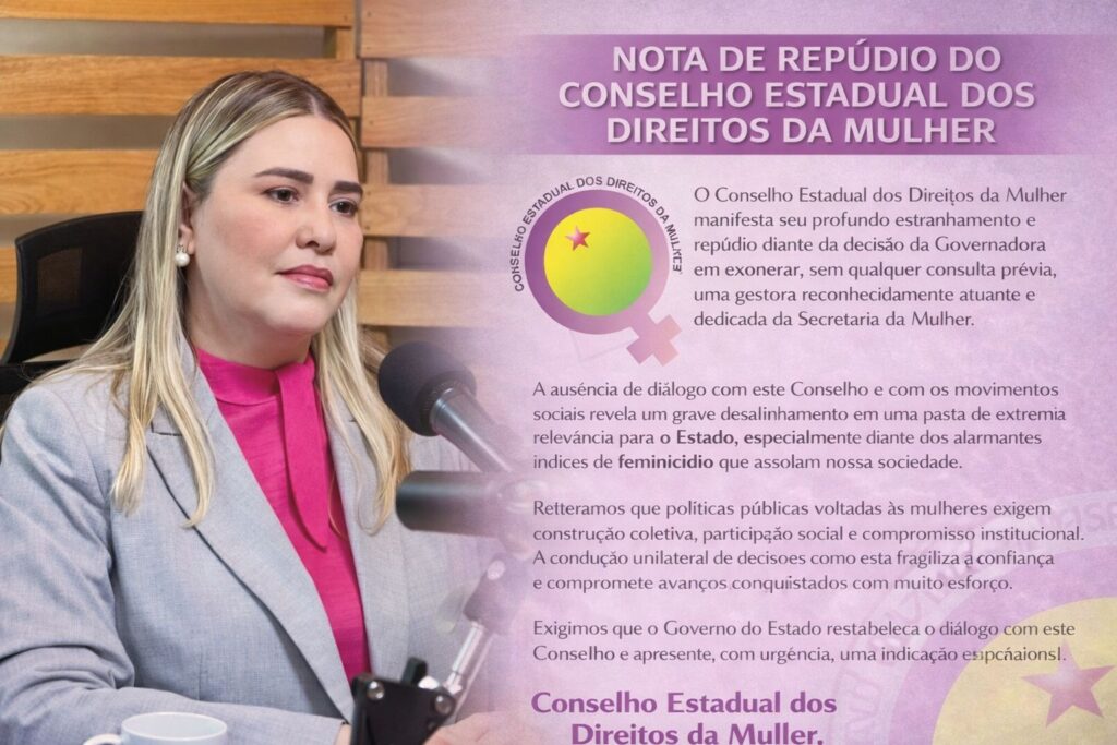 Na publicação, o conselho registra “profundo estranhamento” diante da medida e aponta falta de diálogo com a entidade e com movimentos sociais ligados à pauta. Ainda conforme a nota, a ausência de interlocução é vista como um desalinhamento em uma área considerada estratégica, especialmente diante dos índices de violência contra a mulher.