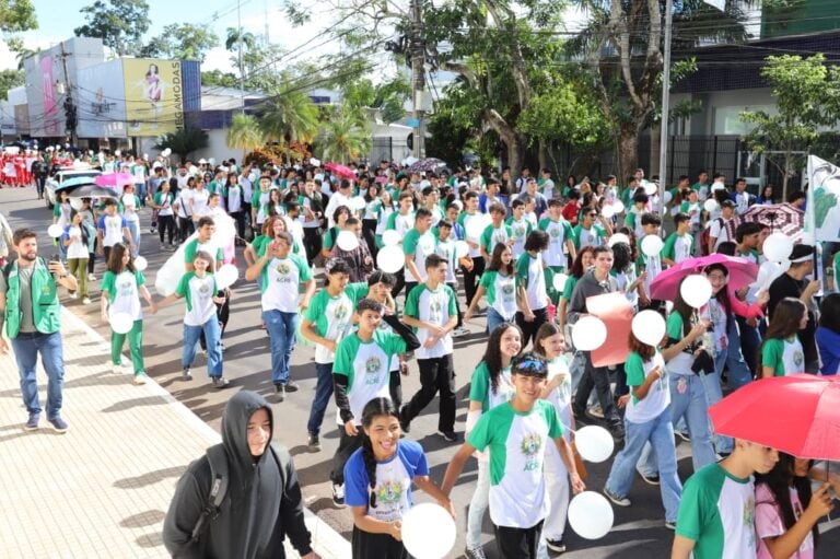 Da caminhada no centro da cidade participaram as escolas Barão de Rio Branco (Cerb), José Rodrigues Leite, Colégio Acreano, Colégio Militar D. Pedro II e Escola Presbiteriana João Calvino. Ao todo, quase mil estudantes participaram da caminhada, que iniciou na praça da revolução, passou pela ponte Juscelino Kubitschek e terminou no Palácio Rio Branco.