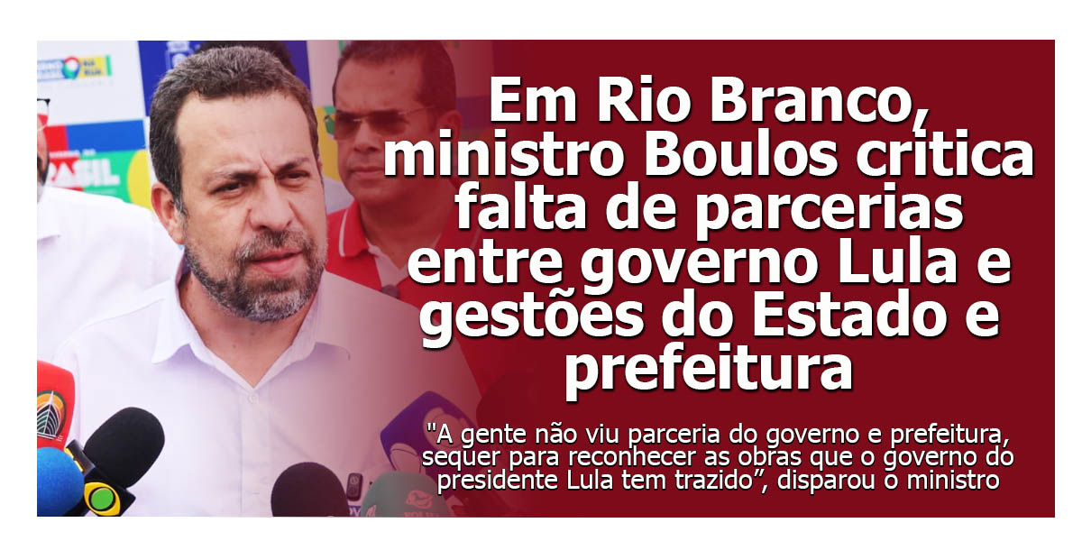 Durante o evento “Governo do Brasil na Rua”, realizado na manhã desta quarta-feira, 29, em Rio Branco, o ministro Guilherme Boulos criticou a falta de articulação entre o governo federal e as gestões estadual e municipal no Acre, ao abordar a execução de políticas públicas e obras financiadas pela União no estado.