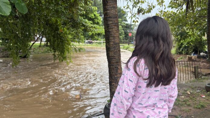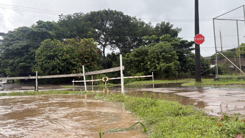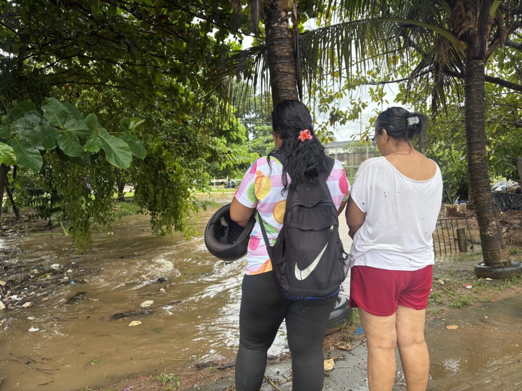 O nível do igarapé subiu rapidamente, surpreendendo a comunidade. Em diversos pontos, a água avançou sobre calçadas, quintais e residências, dificultando a circulação e causando danos materiais.