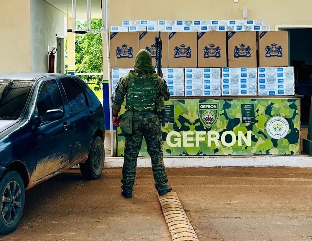 A ação ocorreu durante patrulhamento na zona rural do município de Capixaba, nas proximidades do Ramal da Alcobras, quando as equipes identificaram um veículo em atitude suspeita. Durante a abordagem, os agentes localizaram 12 caixas de cigarros contrabandeados, além de 15 caixas de isqueiros.