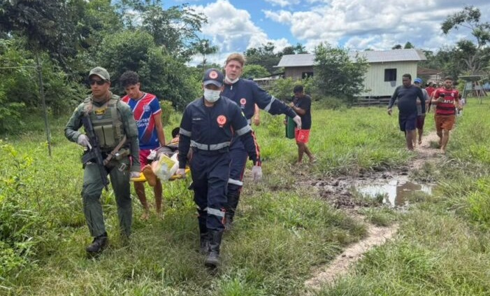 Ao chegarem no local, médico e enfermeiro do Samu realizaram os primeiros atendimentos e os cuidados necessários para embarque na aeronave e transporte até Cruzeiro do Sul, onde a ambulância já estava de prontidão para encaminhar o paciente ao Hospital referência no Juruá.