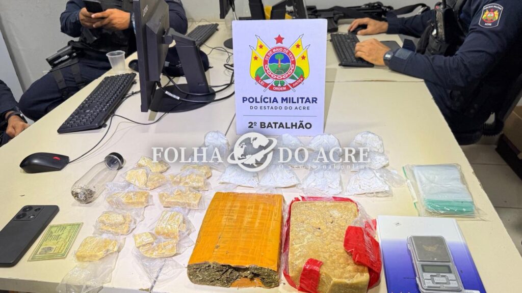 Segundo a PM, a equipe fazia patrulhamento tático no bairro Vila Acre quando recebeu a informação de que havia um forte odor de drogas vindo de uma casa de madeira no Ramal Benfica. Por se tratar de crime de tráfico, com natureza permanente, a guarnição se deslocou a pé até o endereço indicado, já que a via não permite acesso de viatura.