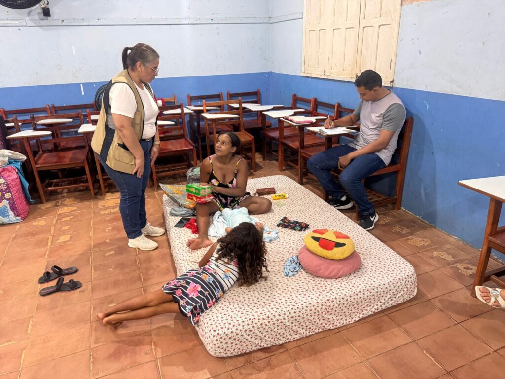 As famílias levadas para os abrigos recebem atendimentos social, de saúde, kits de limpeza e higiene. Também são servidas 3 refeições por dia e cada família ocupa uma sala de aula nas unidades de ensino.