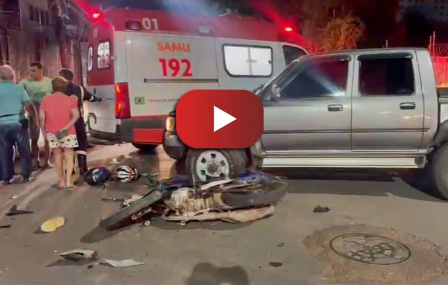 Um vídeo enviado à reportagem da Folha do Acre, na manhã desta quarta-feira (8), mostra o momento exato da colisão entre uma caminhonete Hilux e uma moto modelo Honda Titan, que deixou a jovem Ana Paula, de 19 anos, em estado de saúde gravíssimo.